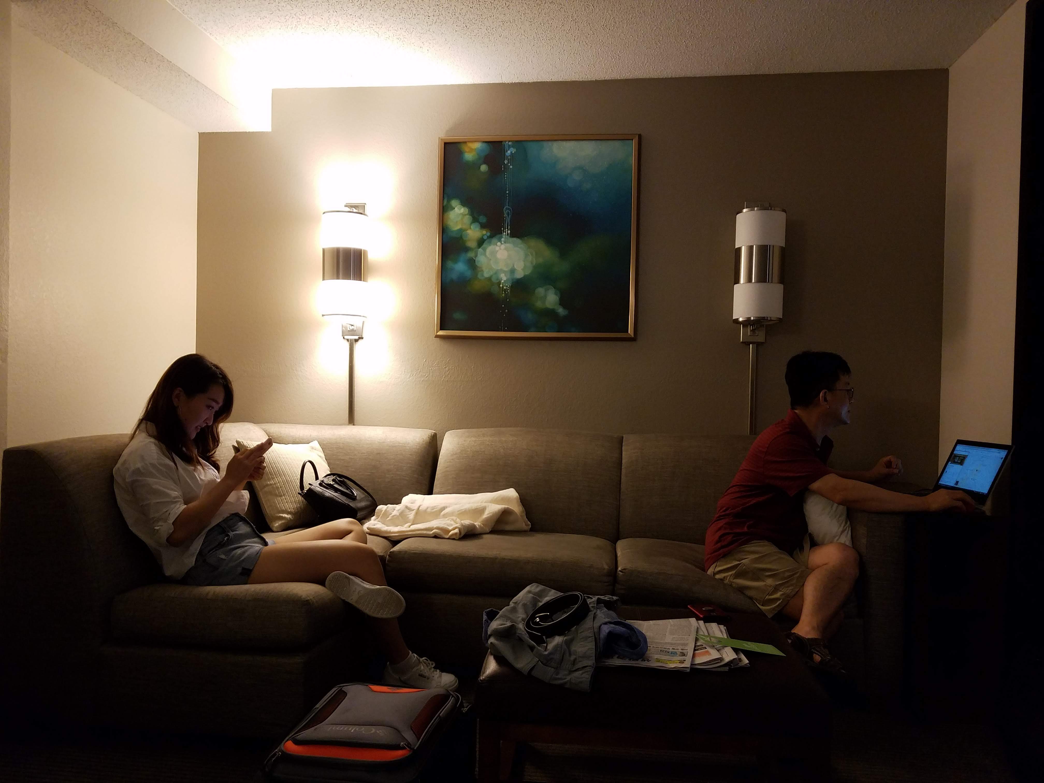 내일은 어디갈까~ 호텔에서 여기 저기 검색하는 지나와 아빠..침실과 분리된 응접실과 책상이 있어서 편했다...